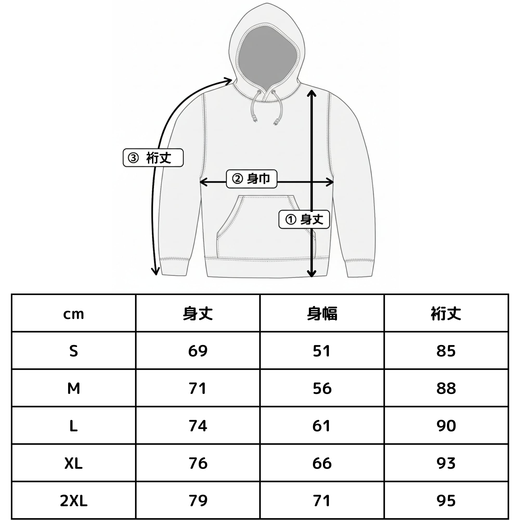 2XL:身丈79 / 身幅71 / 裄丈95